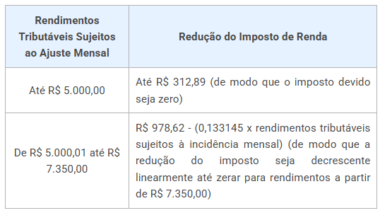 Redução para Rendimentos de R$ 5.000,01 até R$ 7.350,00.