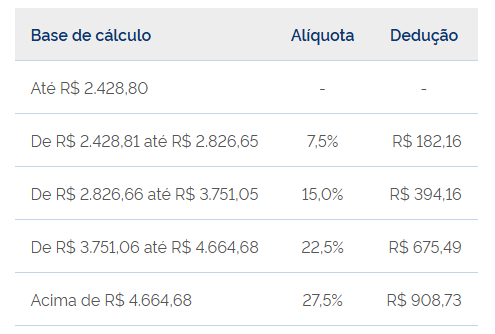 A tabela do IR continua a mesma: |